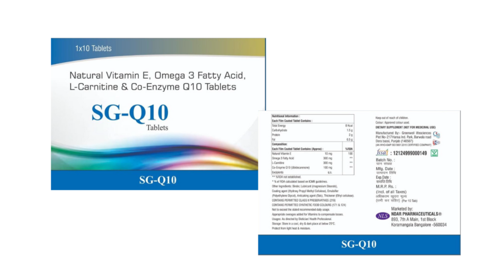 SG-Q10 (Natural vitamin, cod liver oil, L carnitine and co enzyme q10 tablet use and benefits)