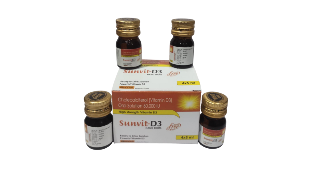 Syp Sunvit D3 is a high-dose form of Vitamin D3 that is designed for easy absorption and convenient intake. The nano delivery system enhances the bioavailability of vitamin D3, ensuring that the body can efficiently use it. Let’s explore the uses, benefits, and key considerations of taking such a high-dose, nano-encapsulated form of vitamin D3: